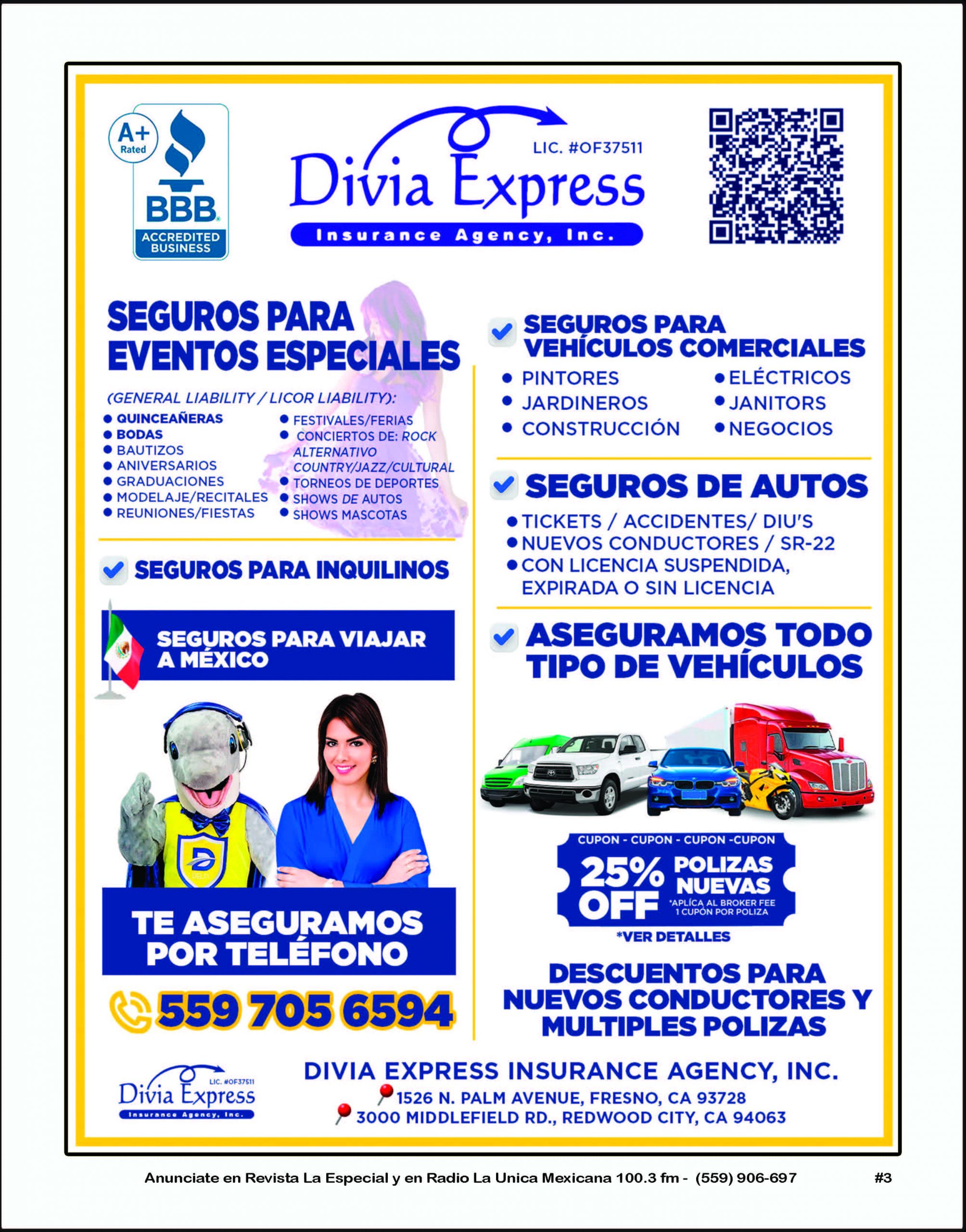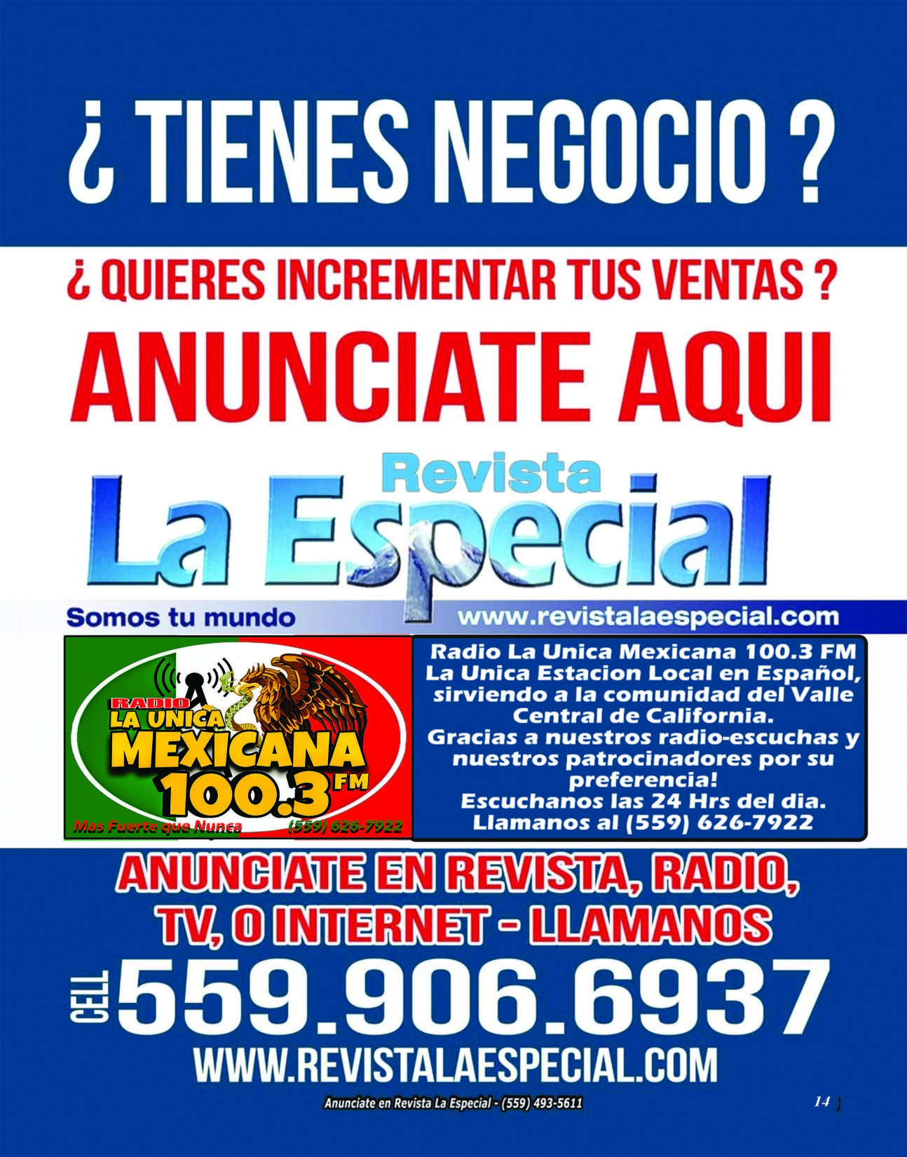 Revista La Especial tiene mas de 10 años sirviendo a la comunidad del Valle Central, distribuyendo la publicidad de nuestros anunciantes desde Madera hasta Tulare, pasando por todas las ciudades del Valle Central.